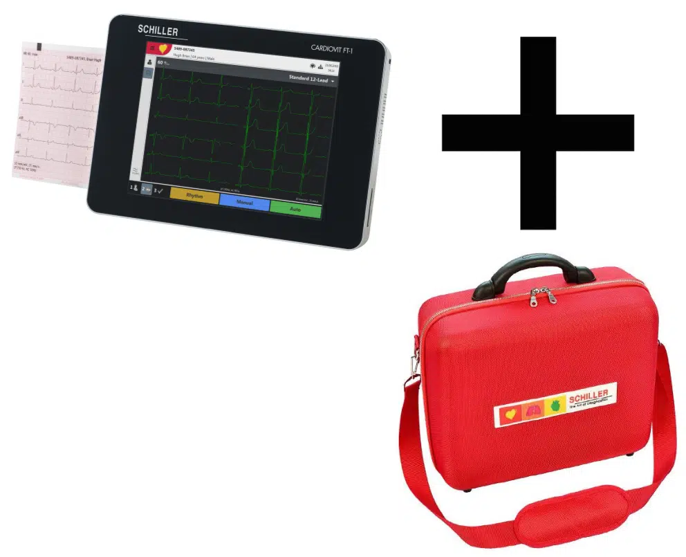 Combideal, de Schiller Cardiovit FT-1 aangeboden samen met een koffer/draagtas voor het vervoeren.