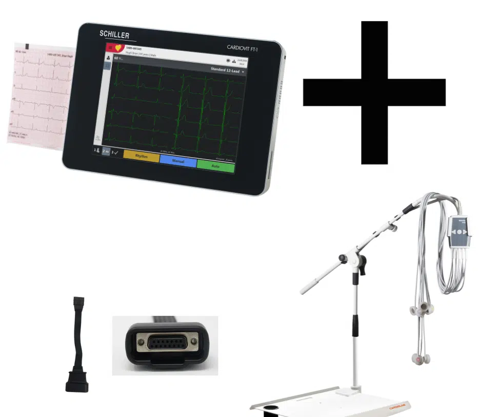 Schiller Cardiovit FT-1 met het vacuümelektrodesysteem Handy VAQ en aansluitadapter.