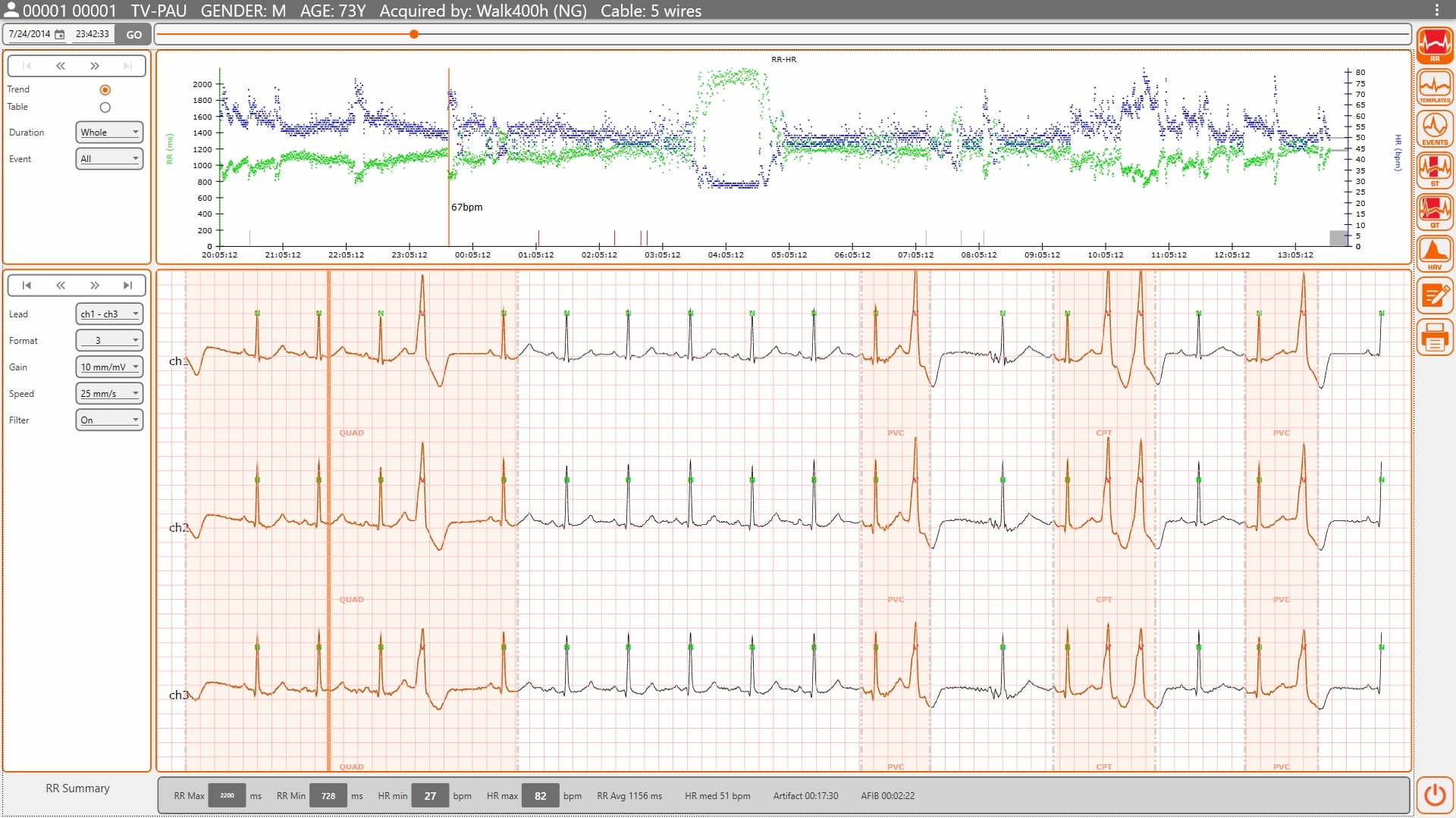 Cardioline Cubeholter Screenshot standalone analysesoftware voor holter ecg's van Cardioline