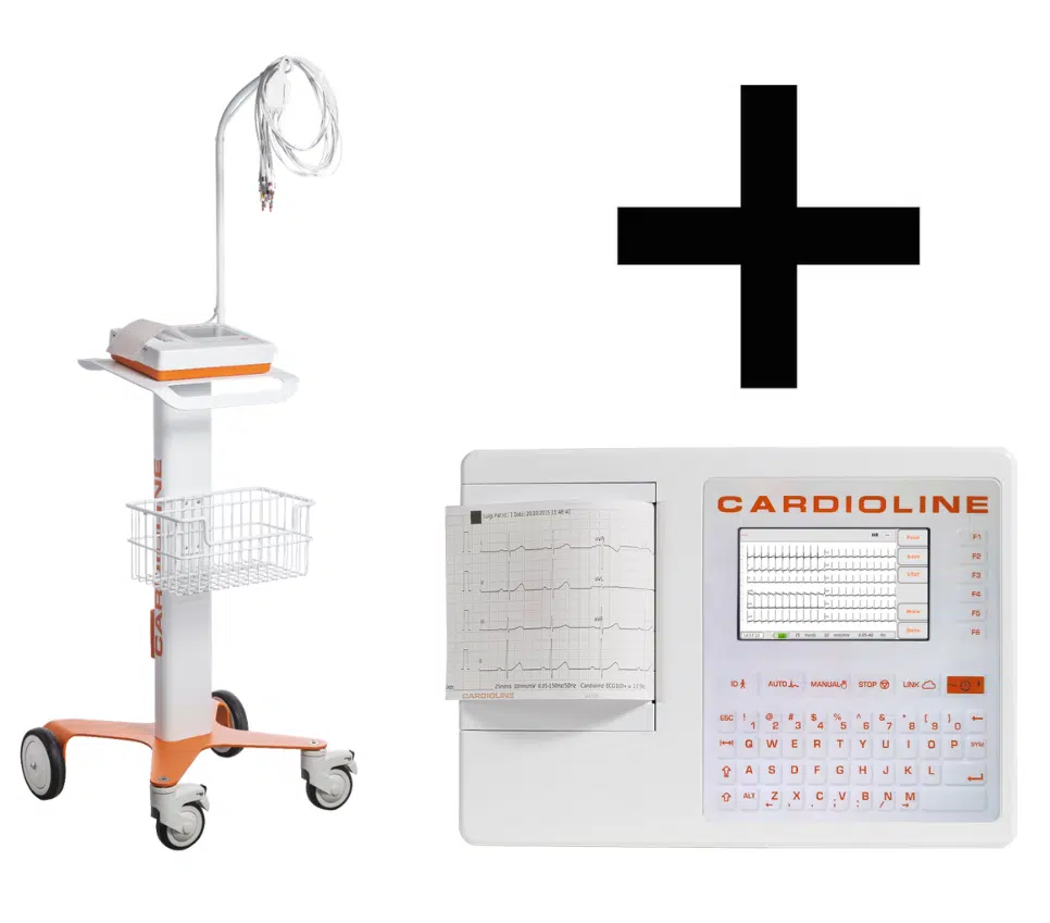 Een Cardioline Trolley voor de Cardioline ECG100S samen met de Cardioline ECG100S