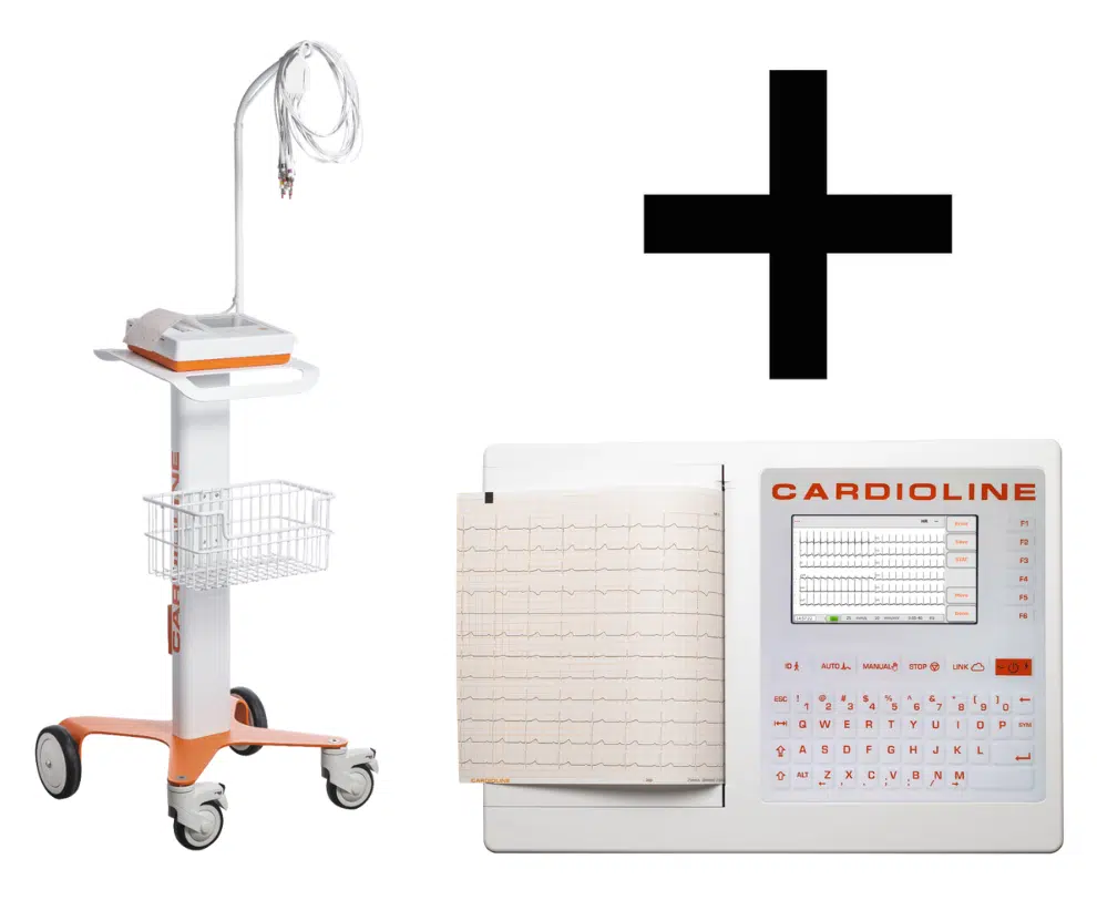 Een Cardioline Trolley voor de Cardioline ECG200S samen met de Cardioline ECG200S