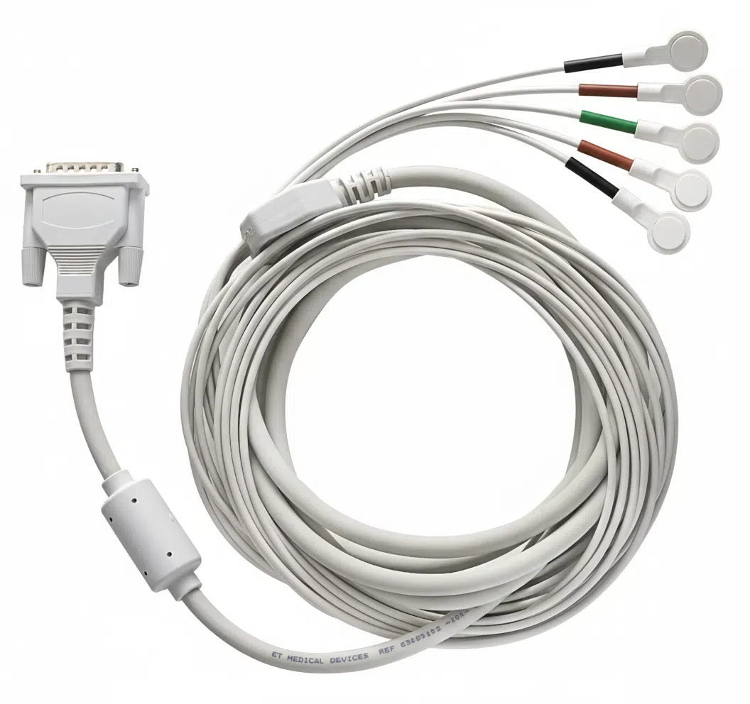 Patiëntenkabel drukknopaansluiting van Cardioline voor de ECG100 serie en de ECG200 serie